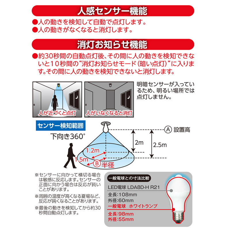 LED電球人感明暗センサー付 E-Bright LDA8D-HR21 [E26 /一般電球形 /60W相当 /昼光色 /1個] 【864】