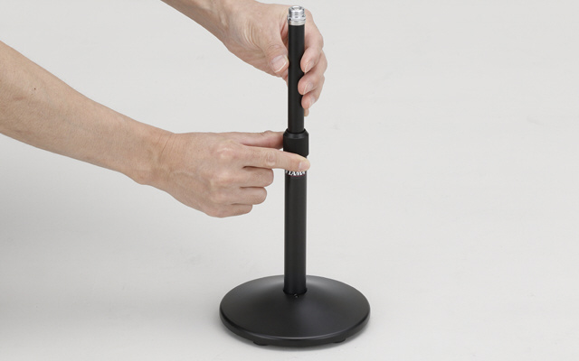 MS30BKは、テーブルやデスクなどの上に置いて使用するストレートタイプの卓上マイクスタンド。
