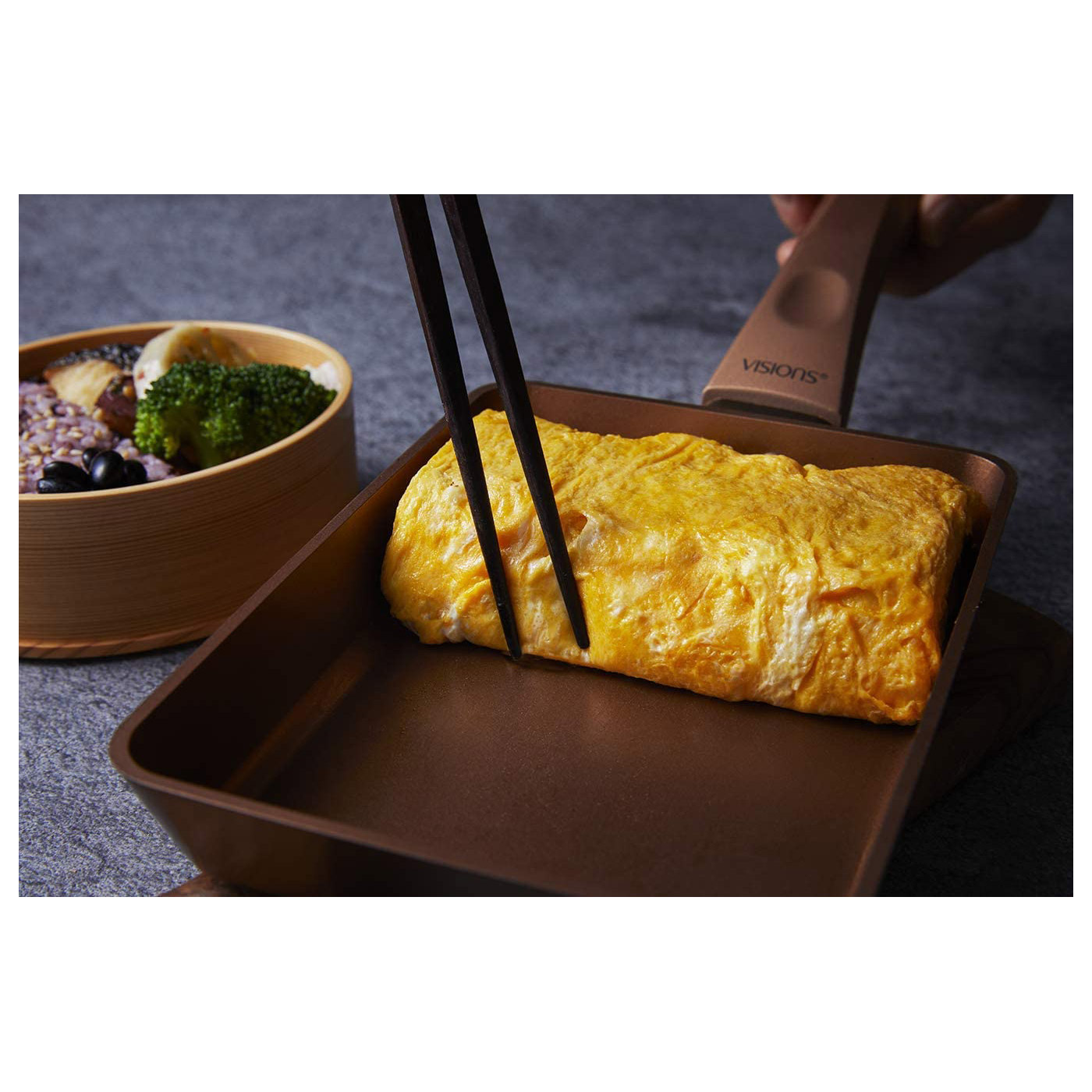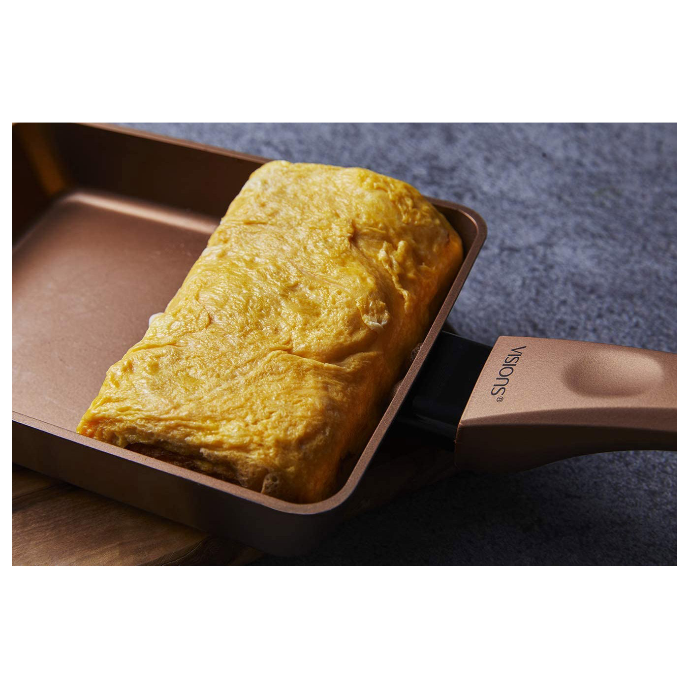 オール熱源対応 フランスで誕生したVISIONSブランドからフライパンが登場 毎日使いたくなるデザインと性能のフライパンです。 。VISIONSをイメージした美しいGOLDカラー 。金属ヘラ試験100万回クリア※金属ヘラは角の丸い滑らかなものをご使用ください。 内面は硬質セラミック配合の3層コーティングで、より高い耐久性を実現しました。 。本体は丈夫な鍛造プレス製法 底面が厚いので均一に熱を伝え、ムラ無く焼けます。