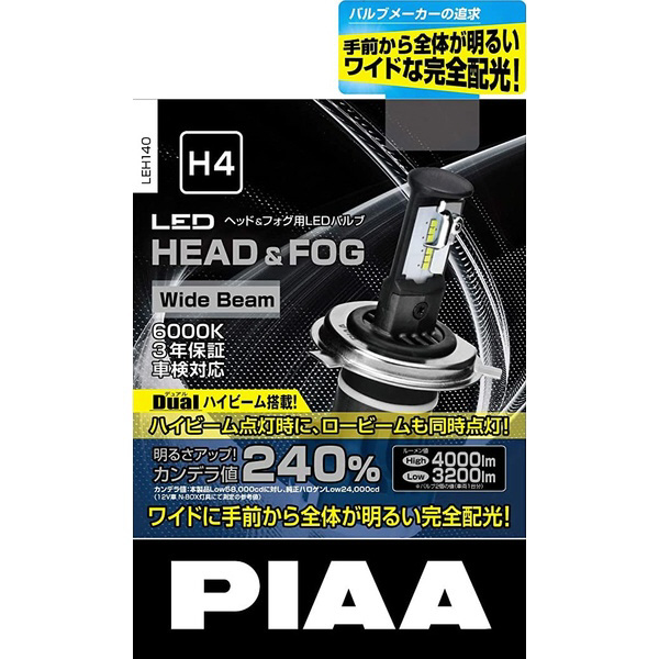 LEH140 ヘッドライト/フォグランプ用LEDバルブ コントローラー別体仕様 6000K 12V20/20W Hi4000lm/Lo3200lm H4 車検対応 2個入り LEH140