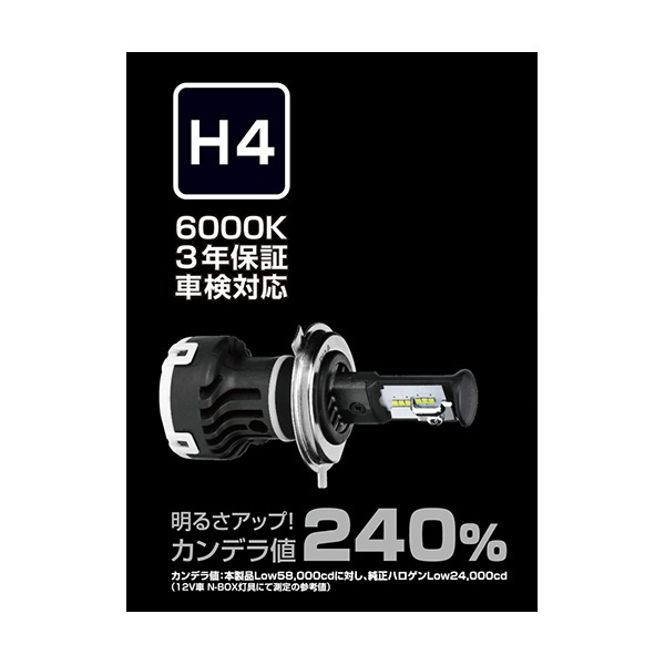 | 商品名 | LEH140 ヘッドライト/フォグランプ用LEDバルブ コントローラー別体仕様 6000K 12V20/20W Hi4000lm/Lo3200lm H4 車検対応 2個入り LEH140 |