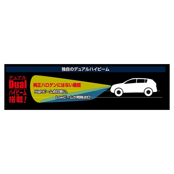 H4タイプには、Highビーム点灯時にLowビームも同時に点灯する、「デュアルビーム機能」が搭載されています。