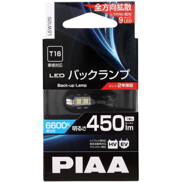 LEW125 バックランプ用LEDバルブ(全方向拡散) 6600K 12V2.8W 450lm T16 車検対応 1個入り LEW125