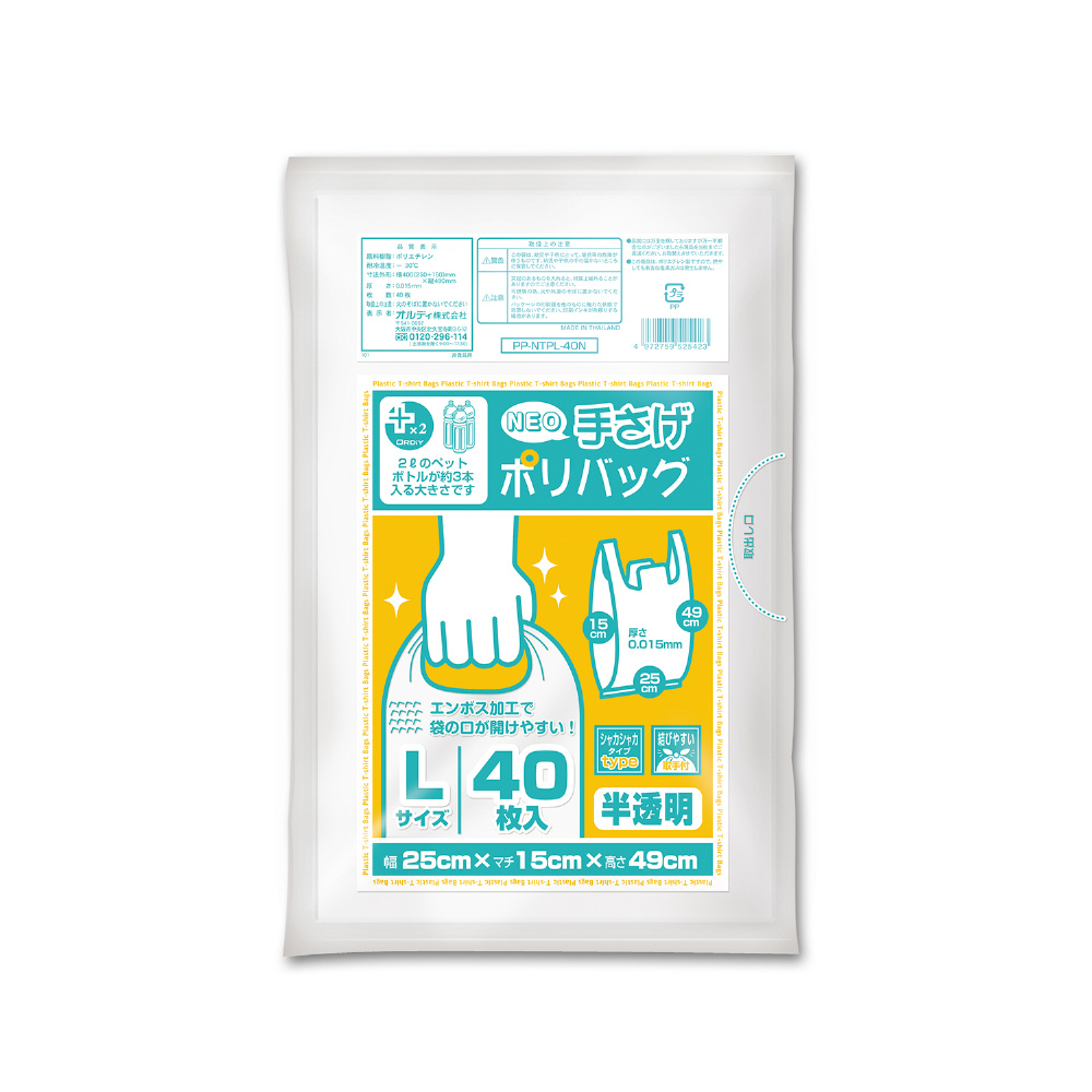 | 商品名 | プラスプラスネオ手提げ L/40号 半透明 40P PP-NTPL-40N |