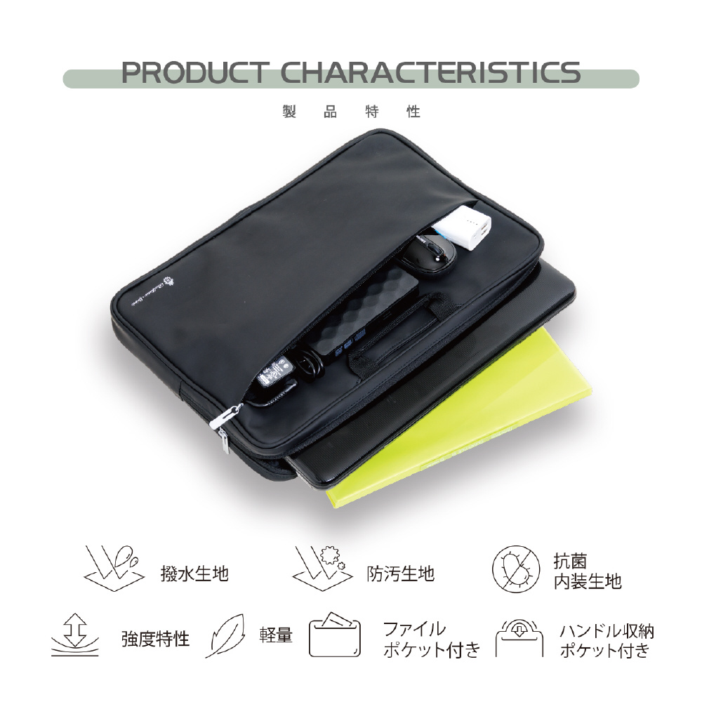 外装は撥水、防汚加工 内装は、抗菌加工のハンドル付きPCインナーケース