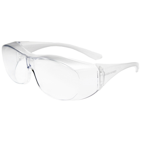 メガネの上から快適フィット。メガネの上からでも着用可能な保護グラス。