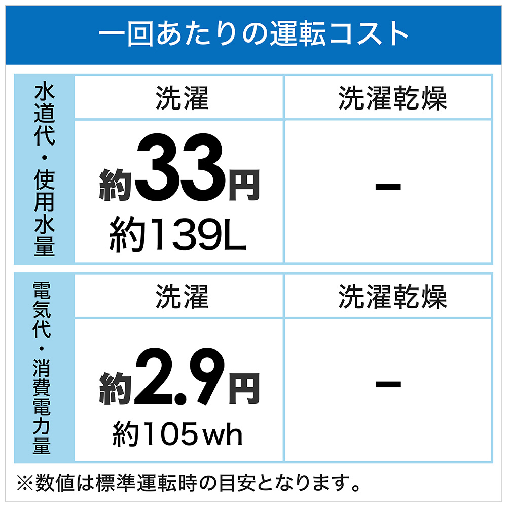 | 標準使用水量[洗濯時] | 約139L |