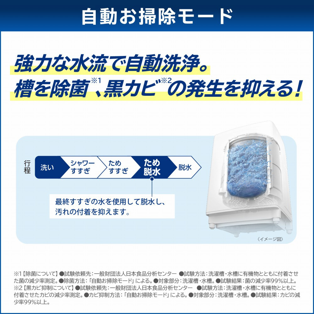 最終すすぎの水を使用して、洗濯槽の外側や外槽の内側、槽の底を自動お掃除します。