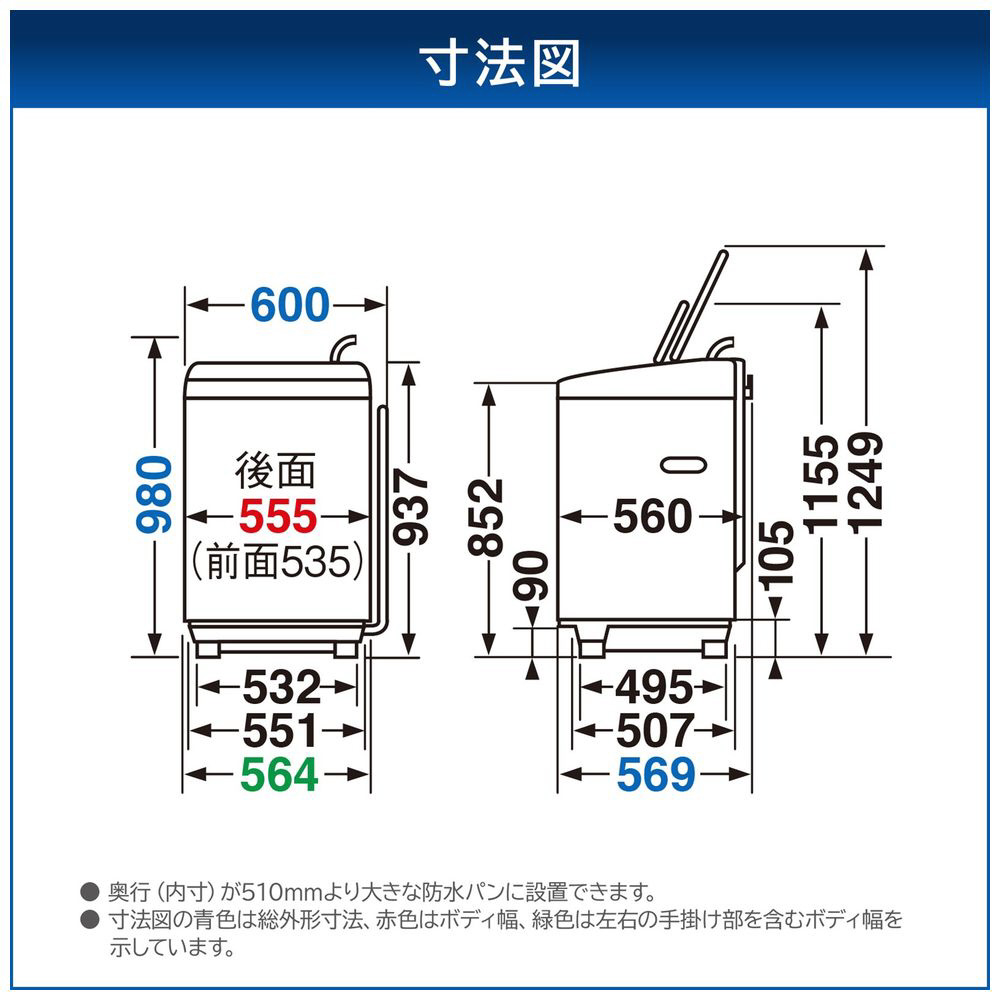 | コース | 標準/つけおき/メモリー/念入り/部屋干し/おしゃれ着/毛布 |