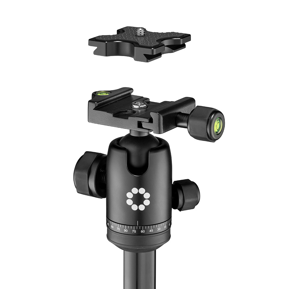 「●ゴリラポッド5Kキットと共通のクイックリリースプレート。付属のクイックリリースプレートは、ゴリラポッド5Kキットと共通モデル。撮影シーンに応じて、ふたつの三脚を容易に使い分けることができます。」