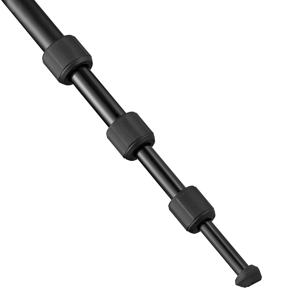 「●耐荷重8kg。本格派一眼カメラにも対応。一眼カメラの使用も可能な、最大8kgの耐荷重性能。脚ロックにはマンフロットで定評のツイスト式Mロックシステムを採用しており、素早く簡単に脚全段のロック解除が可能です。また、開脚角度セレクターを搭載しており、2段階の角度で正確に開脚が可能です。各脚は180°反転して折りたたみができるため、雲台を包み込んでコンパクトに収納可能です。」