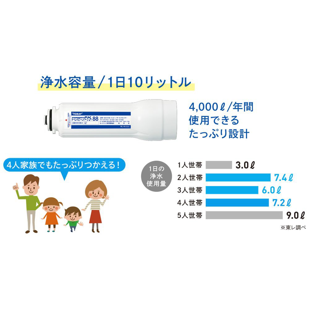 <a href=https://www.biccamera.com/bc/item/9283824/ target=_blank>SK88</a>水栓用。残留塩素、濁り、溶解性鉛や総トリハロメタン等を除去する高除去タイプ。