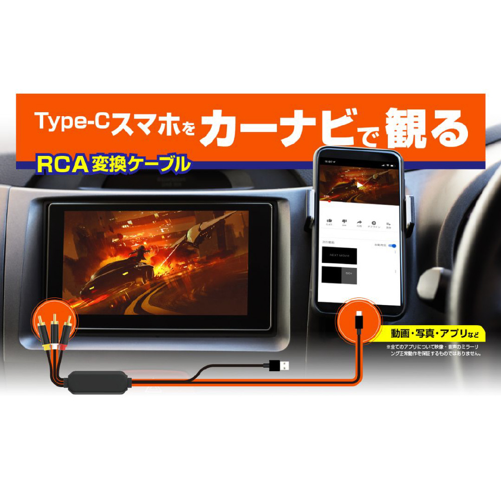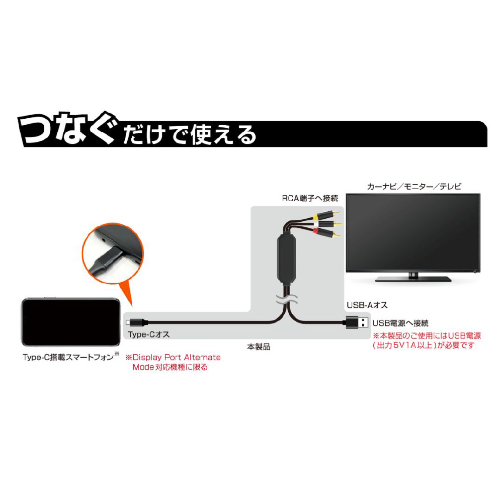映像をミラーリングしながら充電もできる。Type-Cスマホ専用RCA変換ケーブル