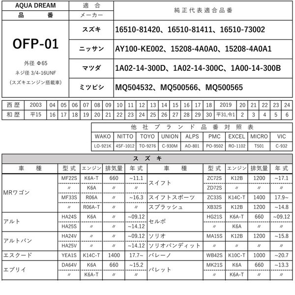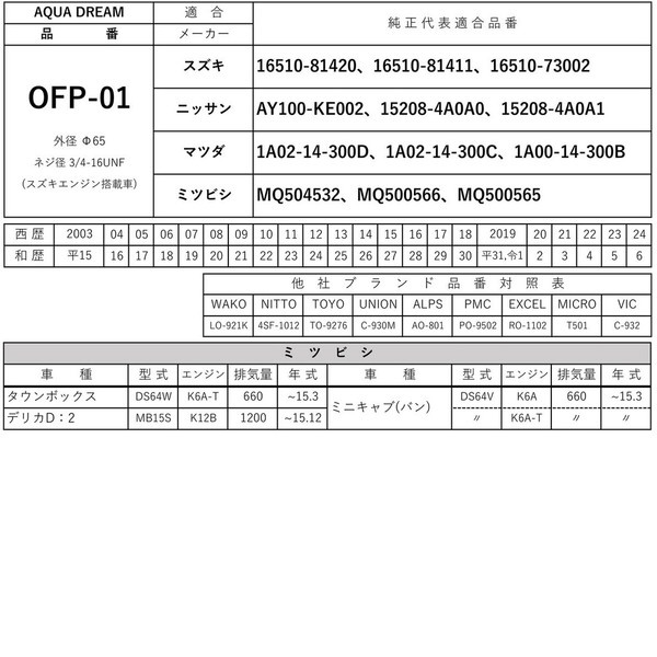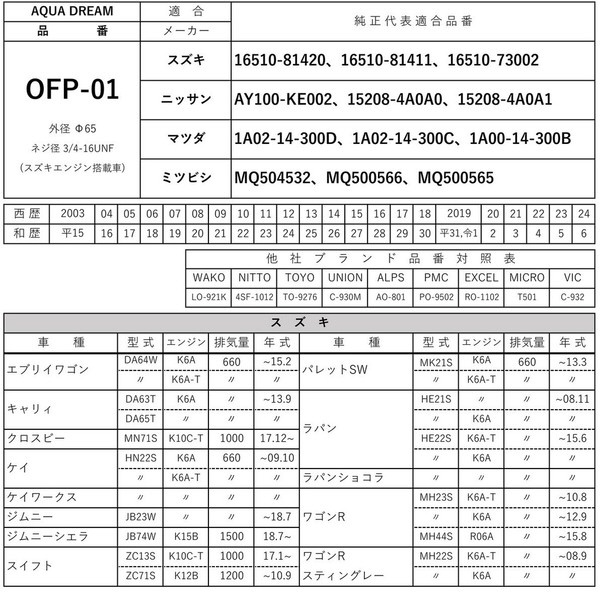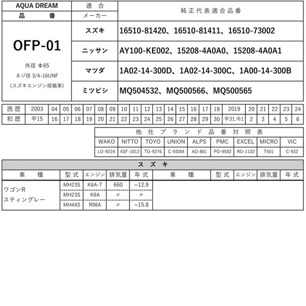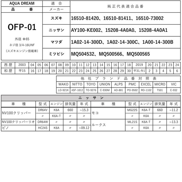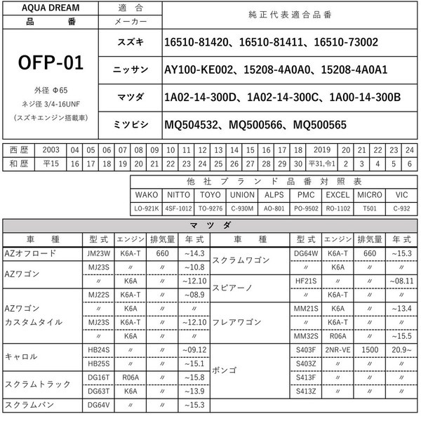 ■互換品番:「WAKO」LO-921K・「NITTO」4SF-1012・「TOYO」TO-9276・「UNION」C-930M・「ALPS」AO-801・「PMC」PO-9502・「EXCEL」RO-1102・「MICRO」T501