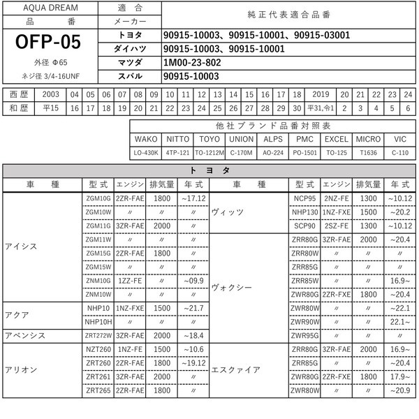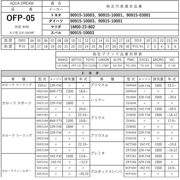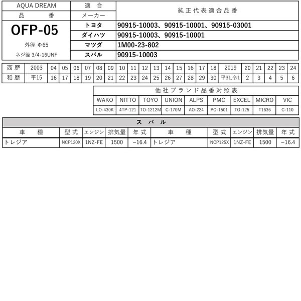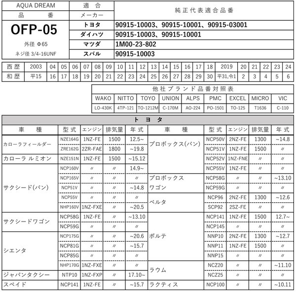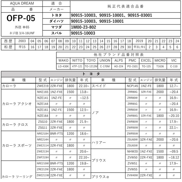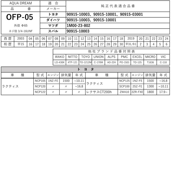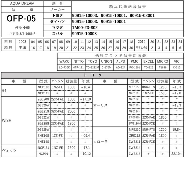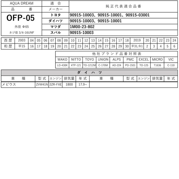 ■純正共通品番:【トヨタ】90915-10003 ・ 【ダイハツ】90915-10003 ・ 【マツダ】1M00-23-802 ・ 【スバル】90915-10003