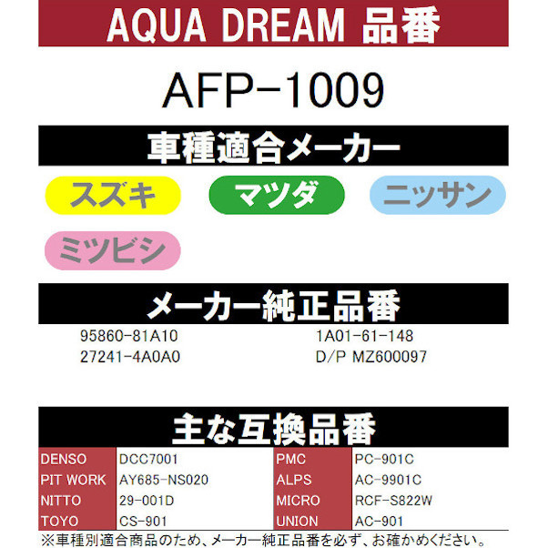 ■互換品番:【DENSO】DCC7001・【PMC】PC-901C・【PIT WORK】AY685-NS020・【ALPS】AC-9901C・【NITTO】29-001D・【MICRO】RCF-S822W・【TOYO】CS-901・【UNION】AC-901