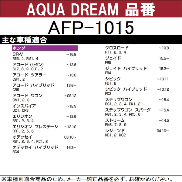 | 商品名 | PLATINUM カーエアコンフィルター ホンダ用 (銀イオンで抗菌効果) 除塵 / 脱臭 / 風量効果 AD-AFP-1015 |