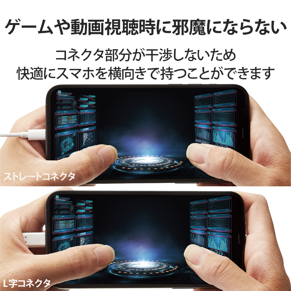 ■L字コネクタを採用し、飛び出しが少ないスッキリした配線が可能なLightningケーブルです。