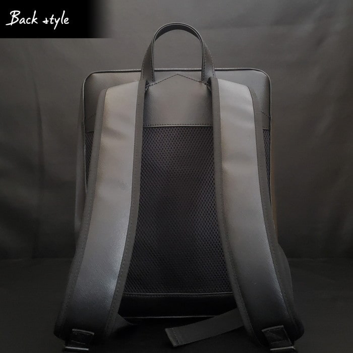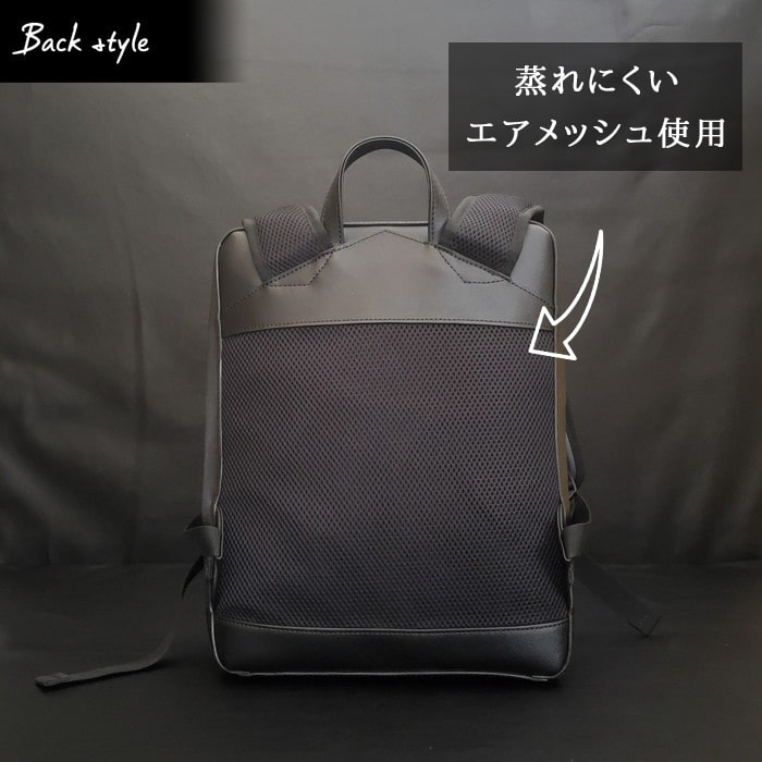 | 仕様1 | 特殊なポストミシンを使い、どんな角度から見ても美しいフォルムで高級感のあるデザインのビジネスリュック |