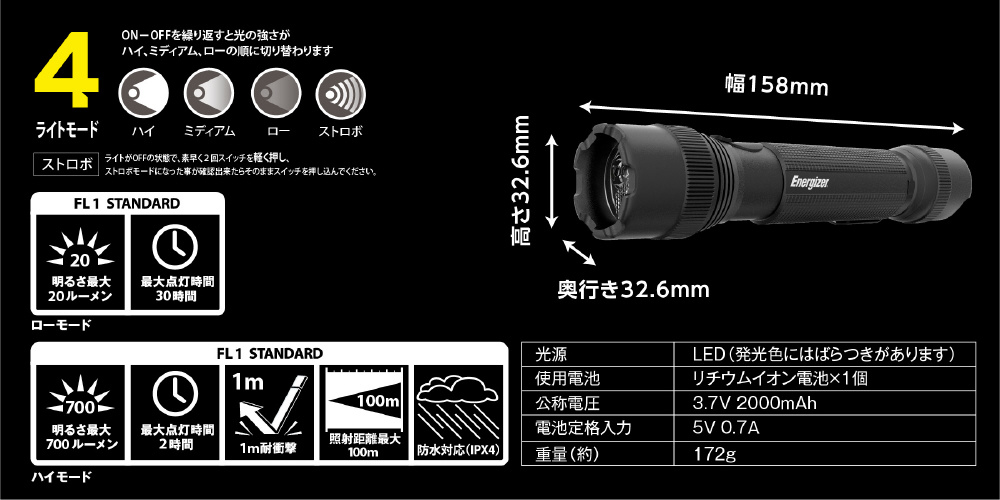 | 商品名 | エナジャイザー 充電式タクティカルメタルライト PMTRL8 |