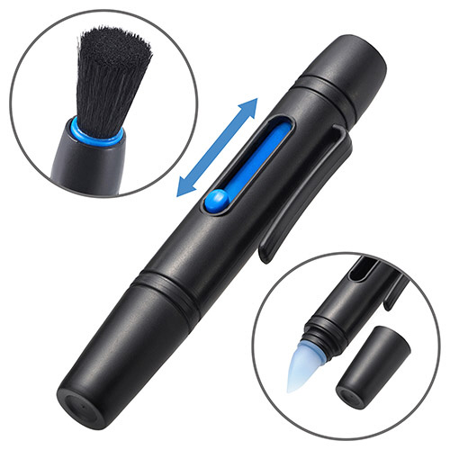 ナイロン製のブラシとシリコン製クリーナーで、OA機器やカメラなどの細かな隙間汚れのお手入れに適しています。約94mmのコンパクトなサイズで持ち運びにも便利です。シリコンクリーナー部は2種類の形状があり、お好みの形状で使用していただけます。