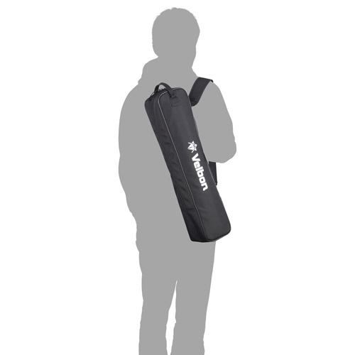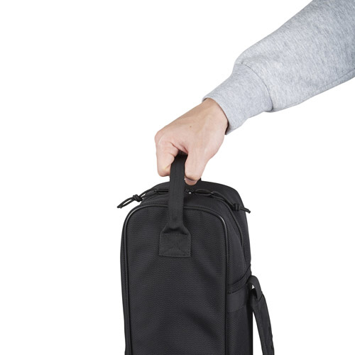 シンプルで持ち運びしやすい形状。重さがある三脚を安全に携帯できます。ショルダーパッド付き。