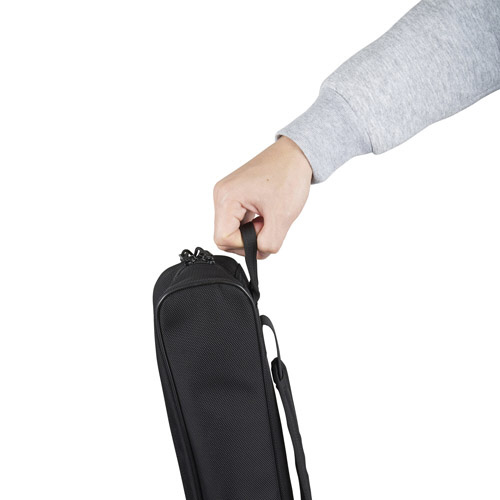 シンプルで持ち運びしやすい形状。ショルダーパッド付き。