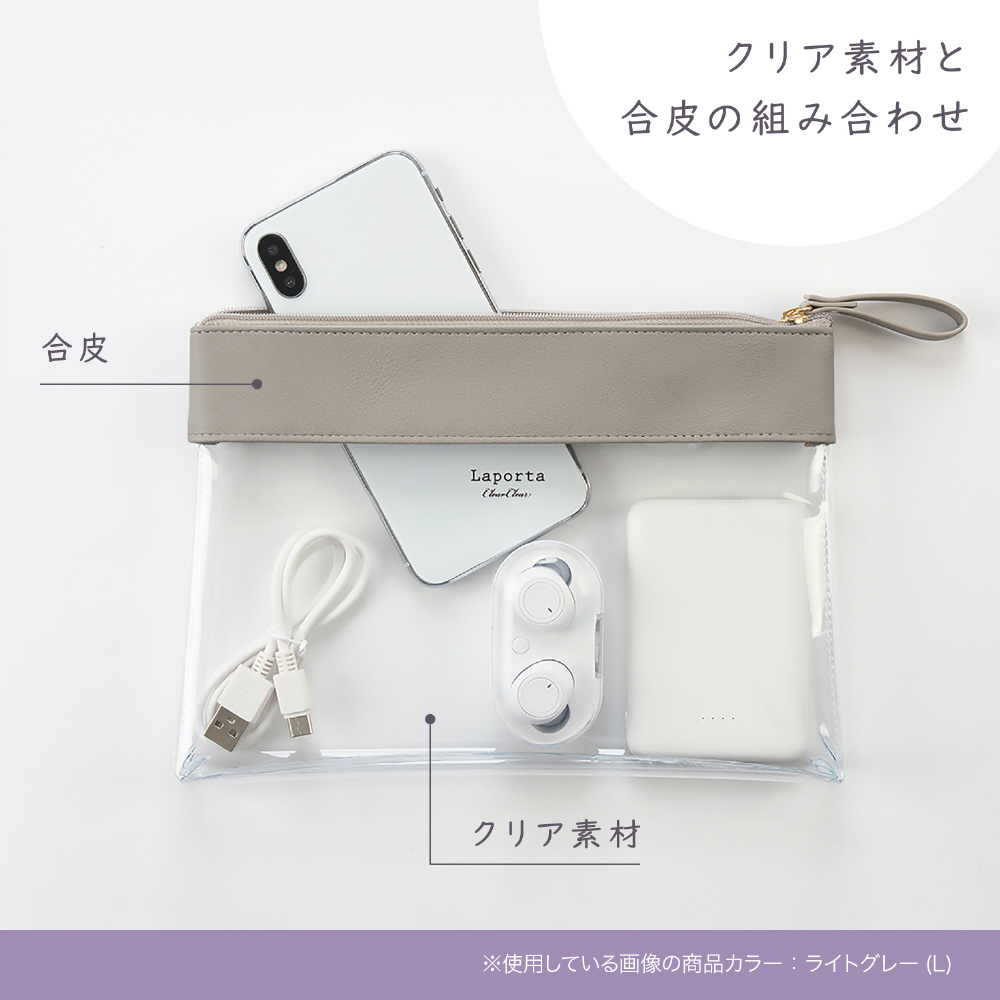 ・クリア素材と上品なカラーリングの合皮の組み合わせで、シンプルでおしゃれなデザイン。