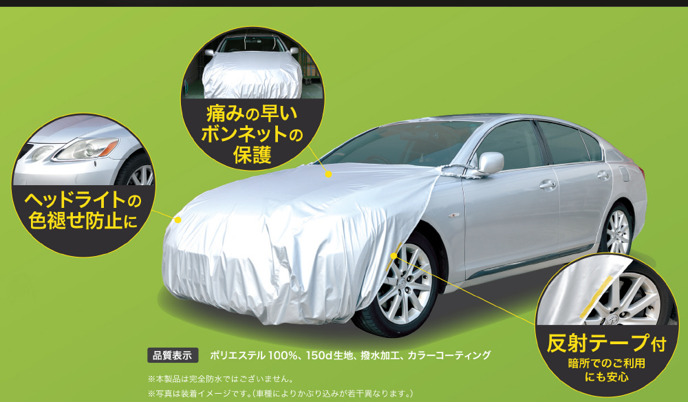 ●痛みの早いボンネットの保護、ヘッドライトの色褪せ防止、ナンバープレートの盗難抑止にも効果的!!