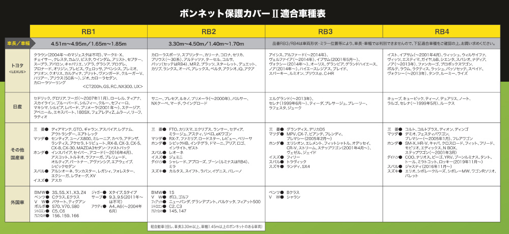 ボンネット保護カバーII 車長:3.30m〜4.50m 車幅:1.40m〜1.70m RB2