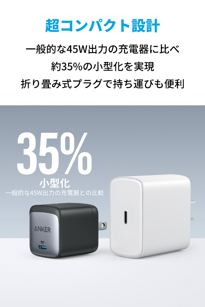 Anker Nano II 45W ブラック A2664N11 [1ポート /USB Power Delivery対応 /GaN(窒化ガリウム) 採用]