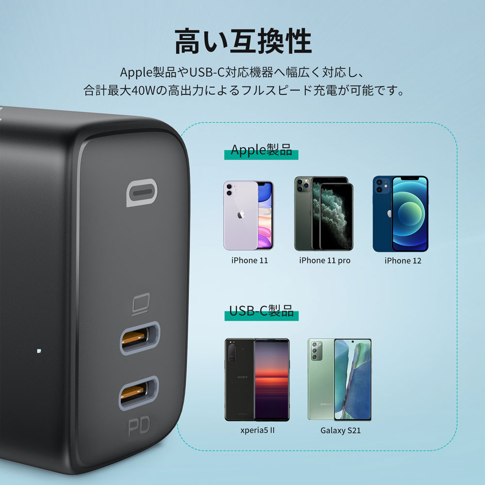 商品名 | AUKEY(オーキー) Swift Duo 40W AUKEY(オーキー) ブラック PA-R2S-BK [2ポート] 【864】 |