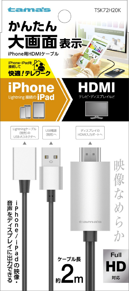| 商品名 | iPhone用HDMIケーブル 2.0m ブラック TSK72H20K 【864】 |