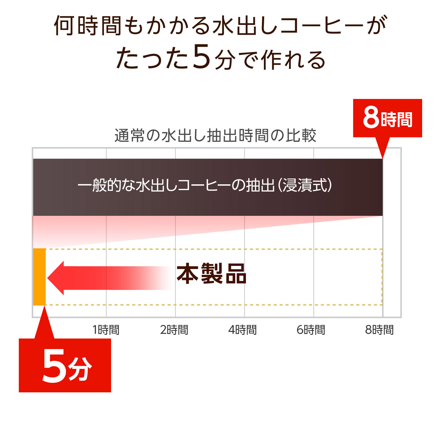 5分で水出しコーヒーが完成!真空抽出で、まろやかですっきりとした味わいのコーヒーを簡単に楽しめます。
