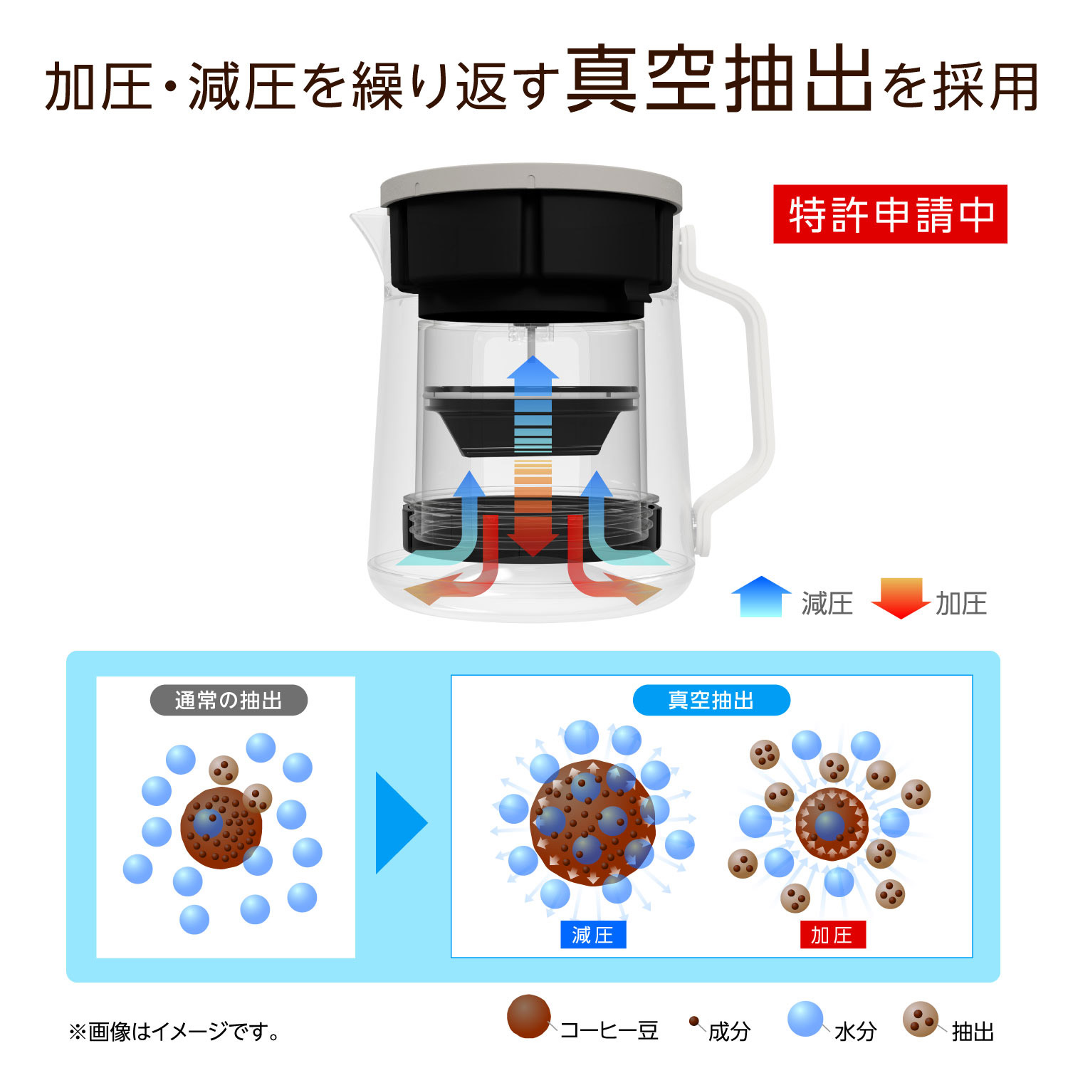 ■加圧・減圧を繰り返す真空抽出を採用 ※特許申請中
