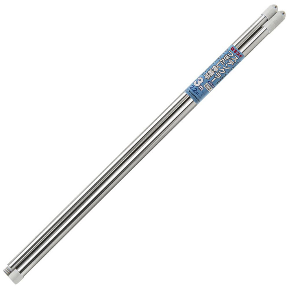 サビに強く丈夫なステンレス箔を鋼管に被覆したものほし竿です。つないで伸ばせるつぎたし伸縮式、スペースや洗濯物の量に合わせて長さ調節ができます。