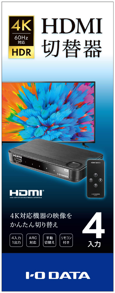 [4入力・1出力] HDMI切替器【4K60Hz対応、リモコン付】 ブラック DA-4HS/4K [4入力 /1出力 /4K対応 /手動]