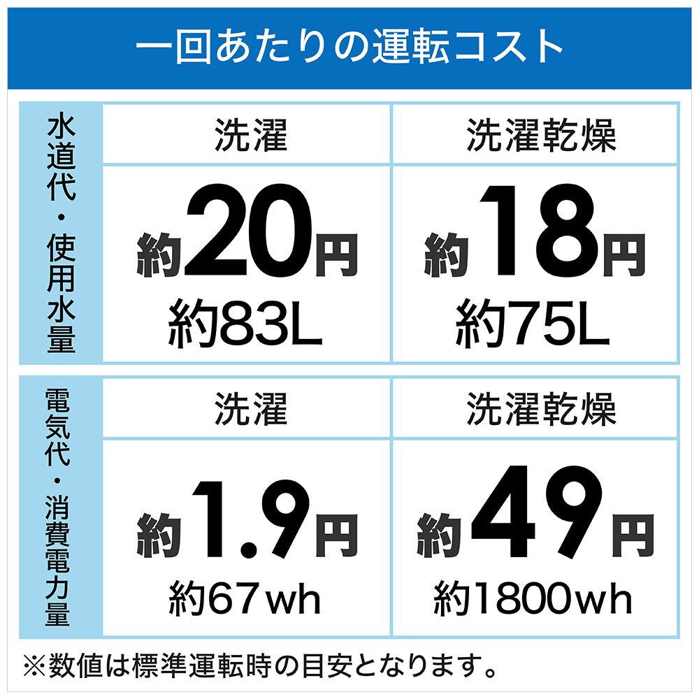 | 標準使用水量[洗濯〜乾燥時] | 75L |