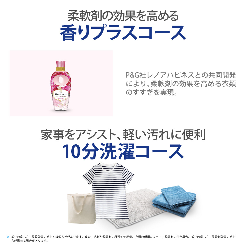 | コース | 【洗濯】標準/おうち洗い/10分洗濯/サッと予洗い/温つけおき洗い/ペット用衣類洗い対応/ホームクリーニング/しわ抑え/毛布/香りプラス 【洗濯〜乾燥】標準/おうち洗い/温つけおき洗い/ペット用衣類洗い対応/毛布 【乾燥】標準/おうち洗い/ハンガー除菌・乾燥・/除菌・消臭/ホームクリーニング/毛布 |