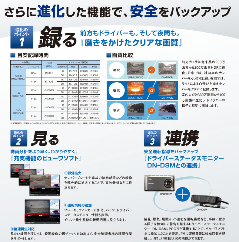 前方もドライバーも。そして夜間も。『磨きをかけたクリアな画質』
