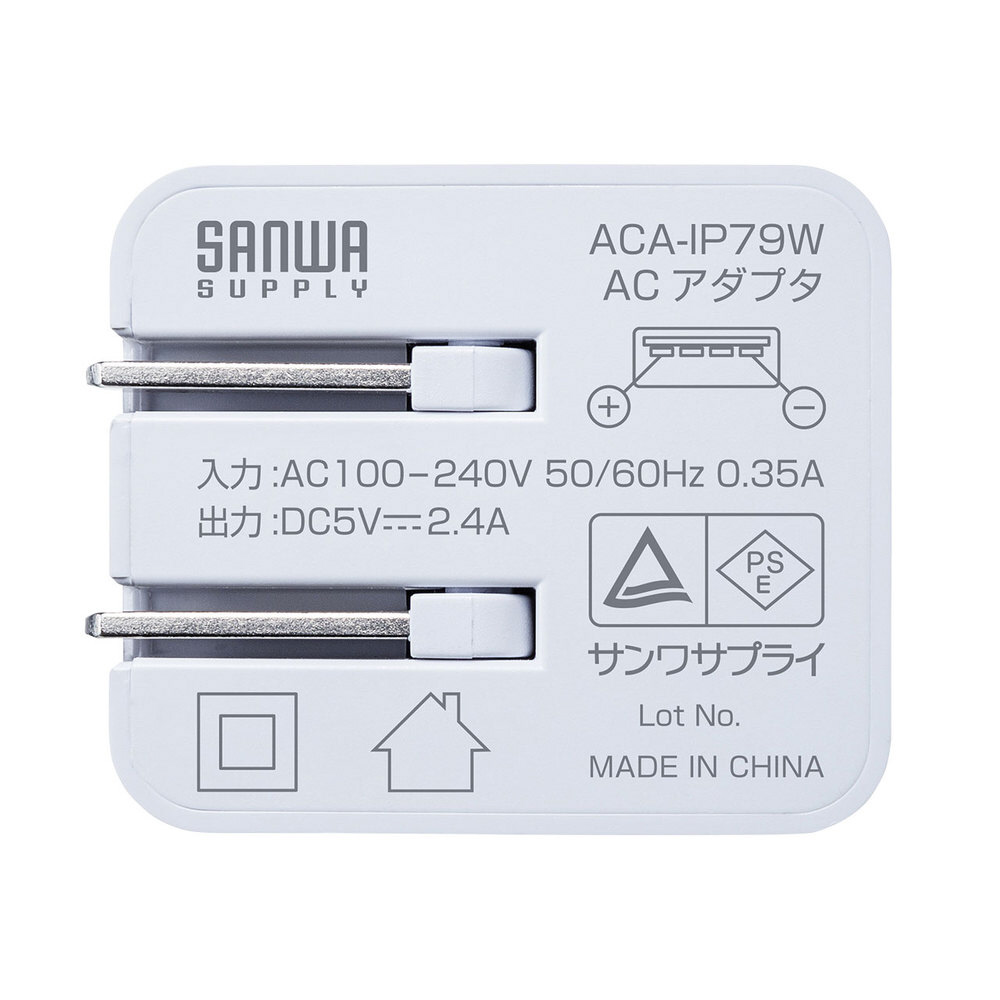 | 商品名 | キューブ型USB充電器 2.4A ホワイト ACA-IP79W [1ポート] |