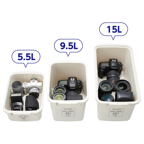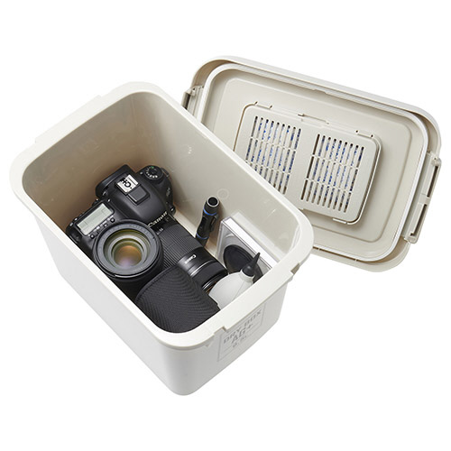 カメラやレンズなどの精密機器やキャンプ用品など湿気に弱いものの収納に便利な抗菌仕様のドライボックス