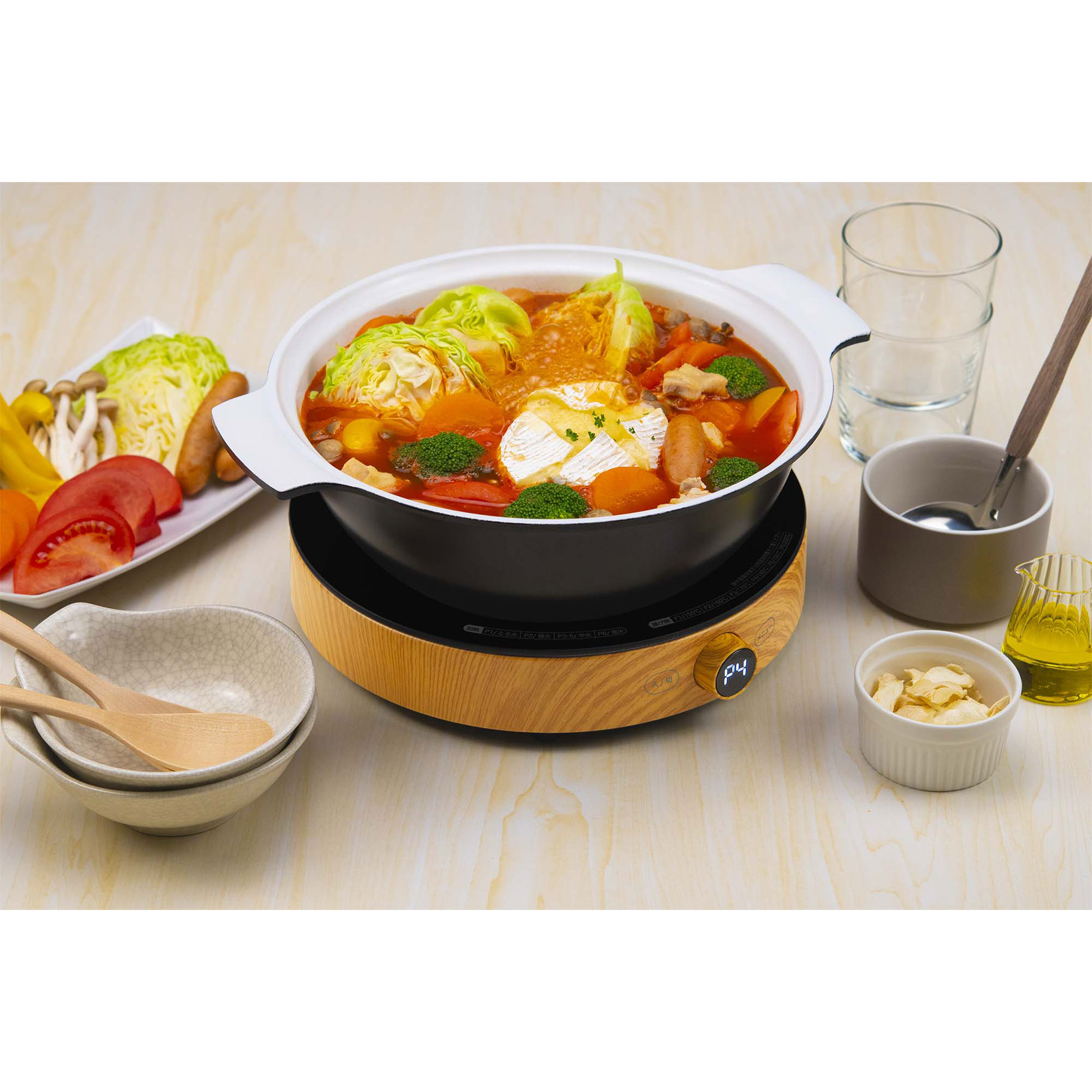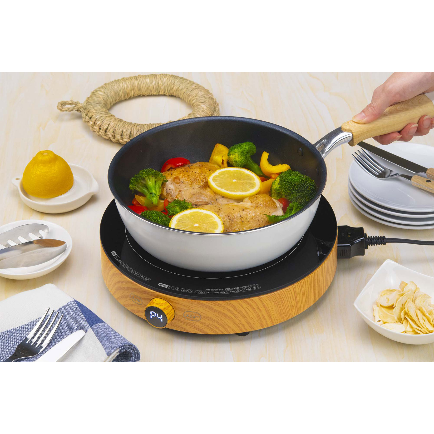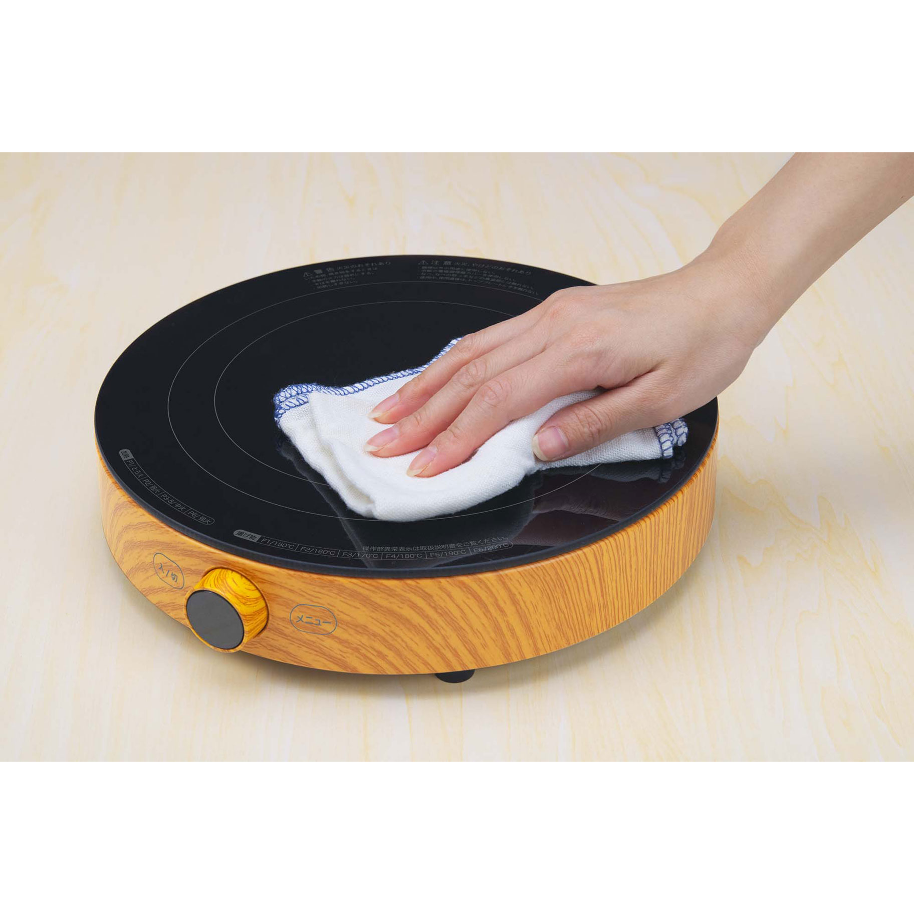 テーブルが広く使える、まる型形状のIH調理器。