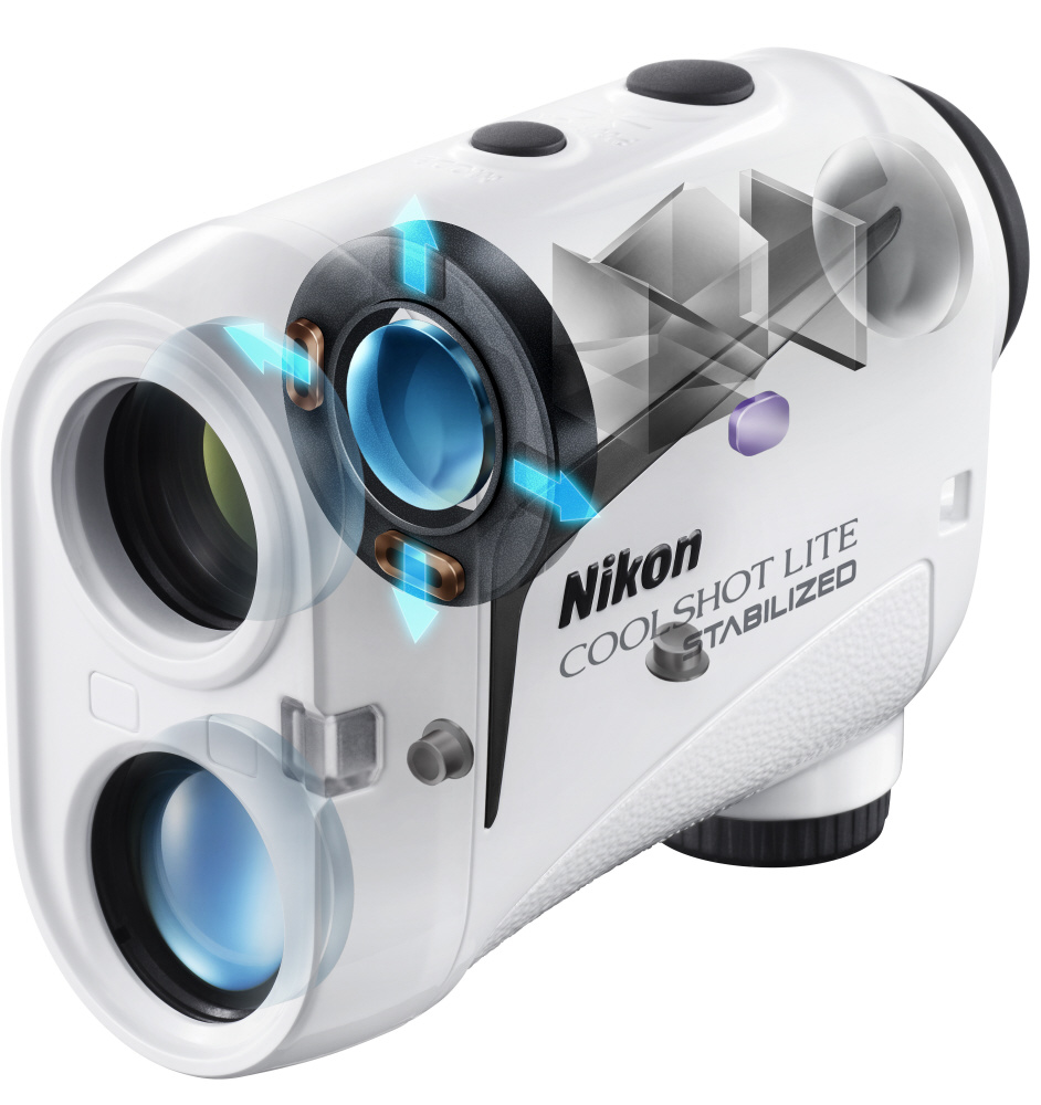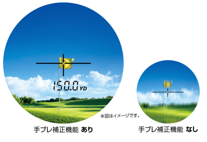 手ブレによるファインダー内の視界の揺れを低減し、さらに照射するレーザー光のブレも同時に補正。