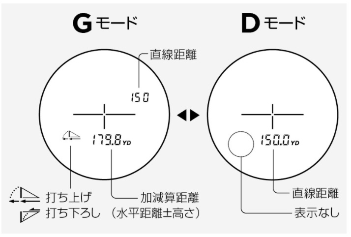 競技で使える「Dモード(直線距離のみを表示)」と、ID Technologyを搭載し起伏のあるコースで