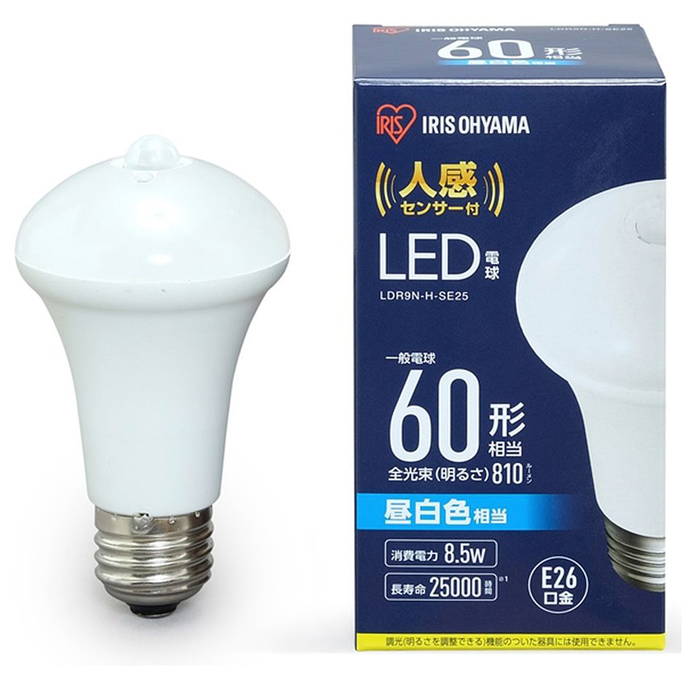 | 商品名 | LED電球 人感センサー付 昼白色 60形相当 LDR9N-H-SE25 [E26 /一般電球形 /60W相当 /昼白色 /1個] |
