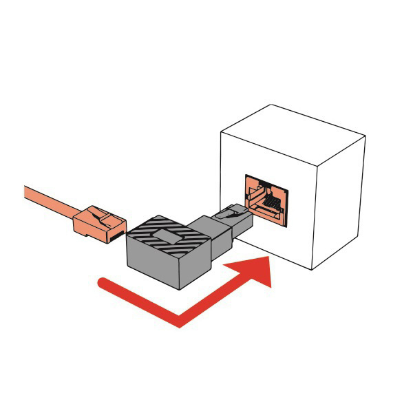 LANケーブルに接続することで、LANケーブルのコネクタの向きを90度回転させることが可能です。