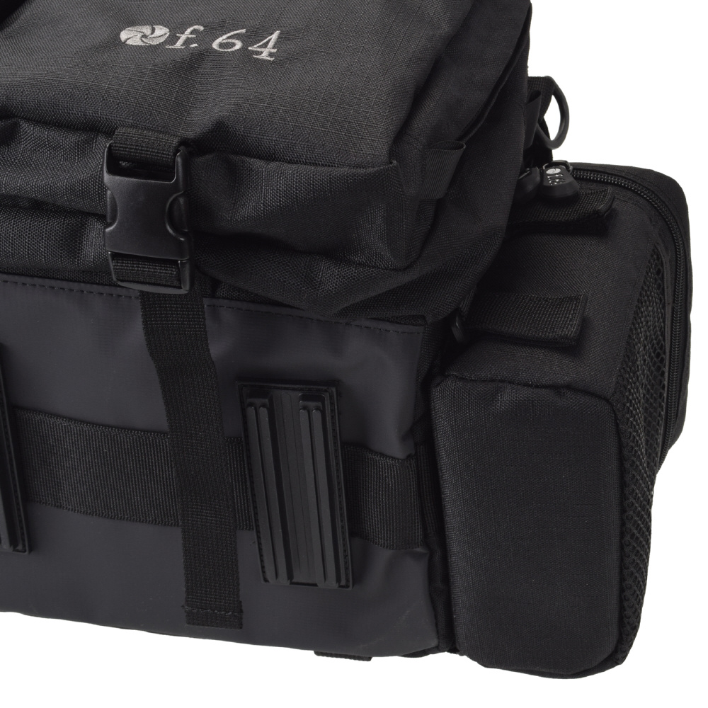 ■メインフラップ : f.64伝統の外開きタイプのメインフラップ。担いだままの状態でフルオープンにしても両手がフリーとなるので、効率の良い出し入れが可能です。