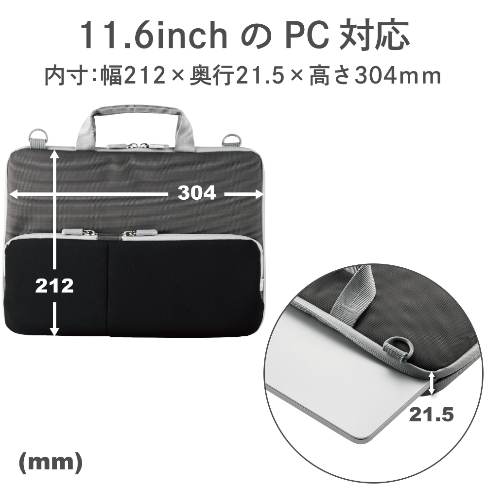 ノートパソコン / タブレットPC対応[〜11.6インチ] ショルダーベルト付きポケットインナーバッグ ブラック BM-IBHPTS11BK 【864】