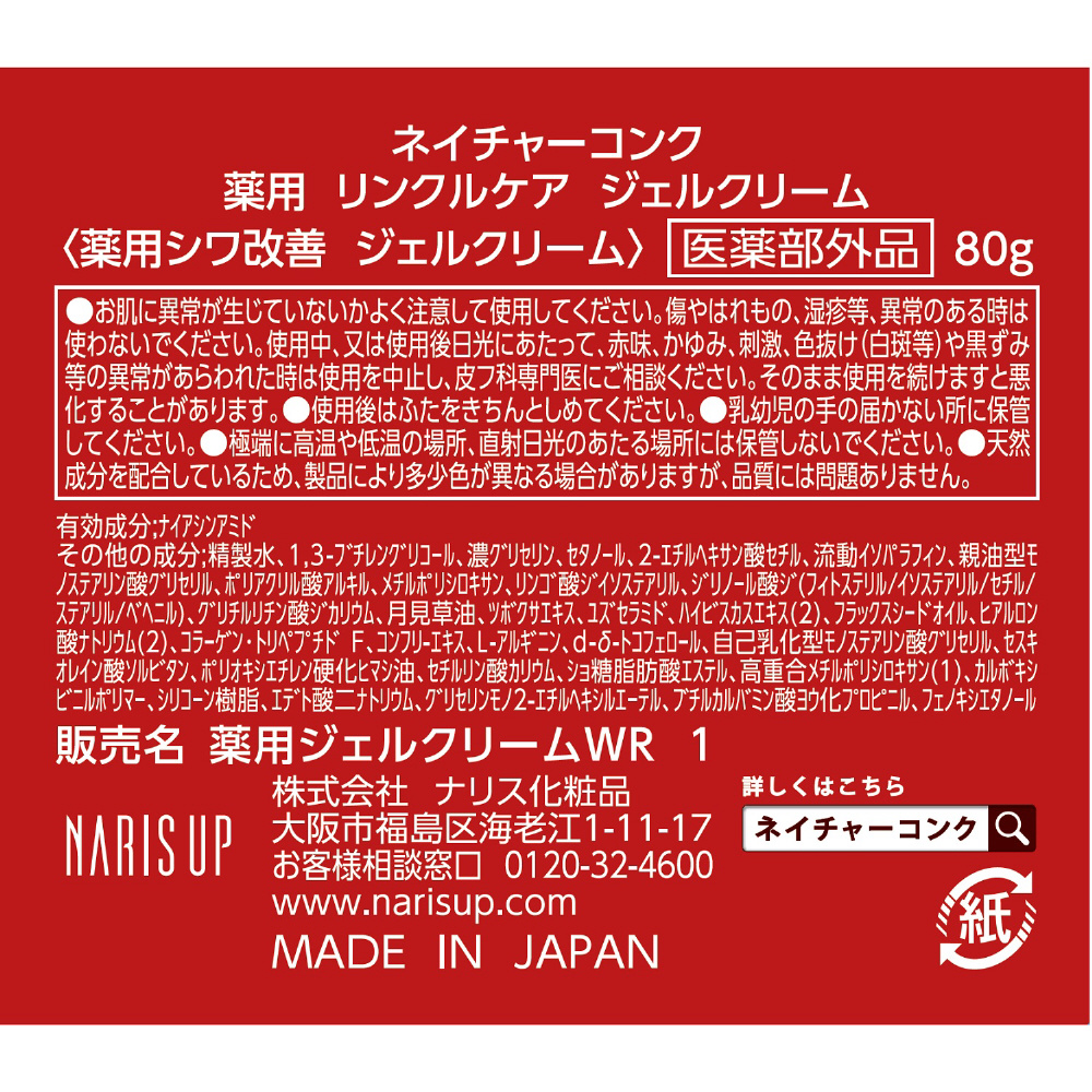 | 商品名 | ネイチャーコンク 薬用 リンクルケア ジェルクリーム 80g |
